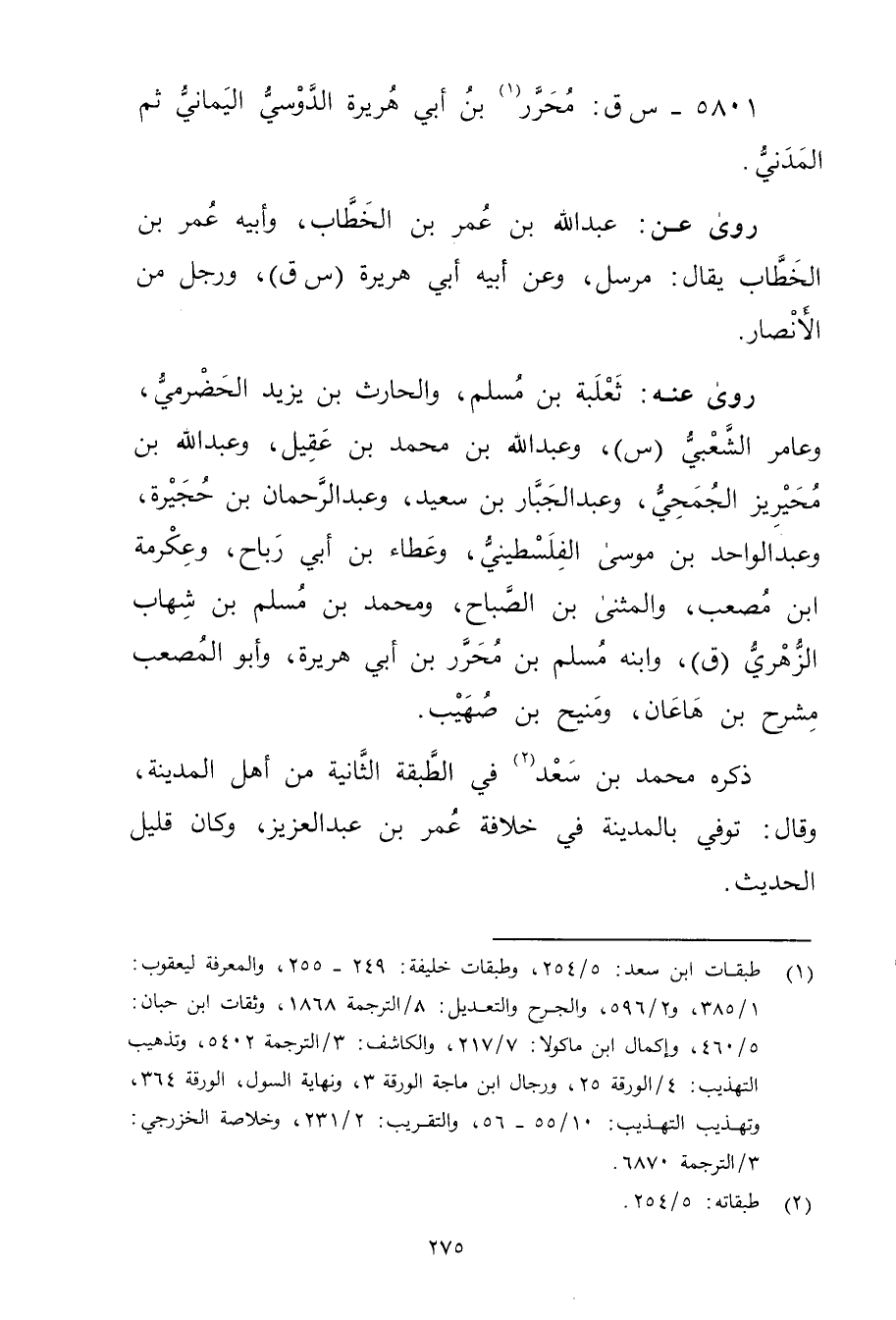 5801 - س ق: محرر بن أَبي هُرَيْرة الدوسي اليماني (1) ثم المدني.