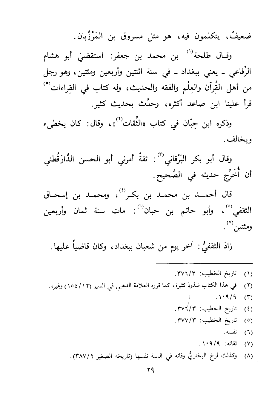 (2) في هذا الكتاب شذوذ كثيرة، كما قرره العلامة الذهبي في السير (12 / 154) وغيره.