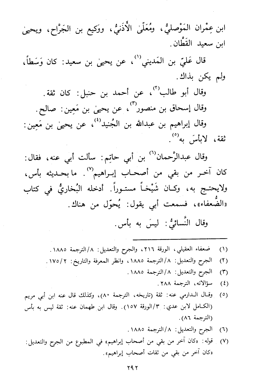 (5) وَقَال الدارمي عَنه: ثقة (تاريخه، الترجمة 80) ، وكذلك قال عنه ابن أَبي مريم (الكامل لابن عدي: 3 / الورقة 157) . وَقَال ابن طهمان عَنه: ثقة ليس به بأس (الترجمة 86) .