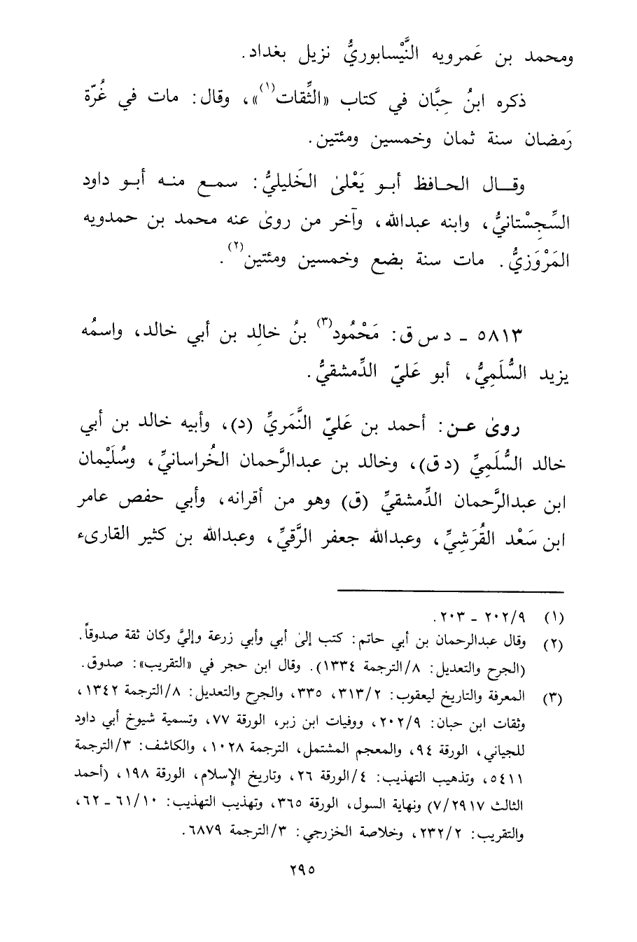 5813 - د س ق: محمود بن خالد بن أَبي خالد (3) ، واسمه يزيد السلمي، أَبُو علي الدمشقي.