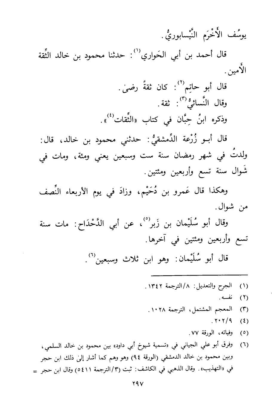 (6) وفرق أبو علي الجياني في "تسمية شيوخ أبي داود "بين محمود بن خالد السلمي، وبين محمود بن خالد الدمشقي (الورقة 94) وهو وهم كما أشار إلى ذلك ابن حجر في "التهذيب ". وَقَال الذهبي في الكاشف: ثبت (3 / الترجمة 5411) وَقَال ابن حجر =