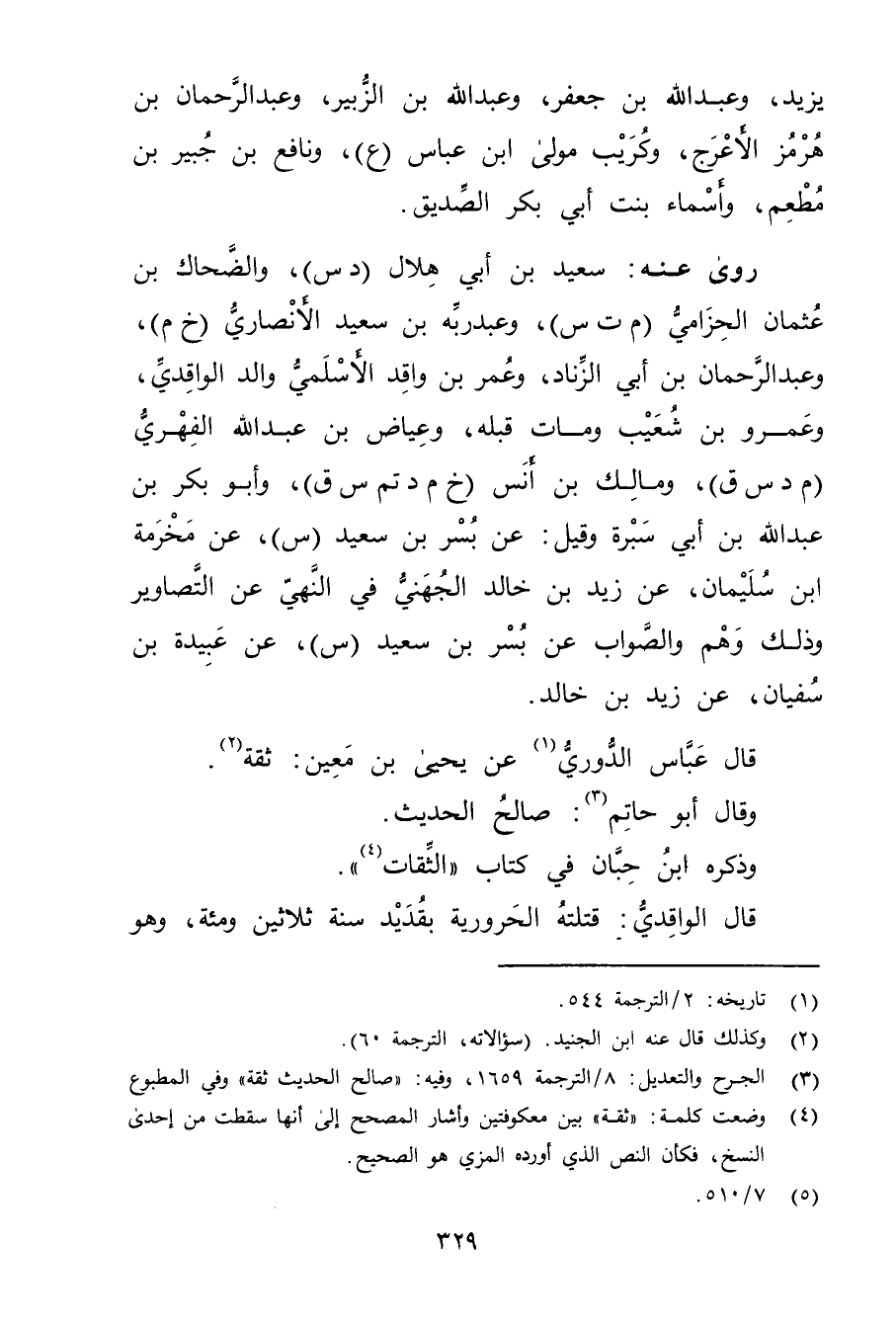 (3) الجرح والتعديل: 8 / الترجمة 1659، وفيه: "صالح الحديث ثقة "وفي المطبوع