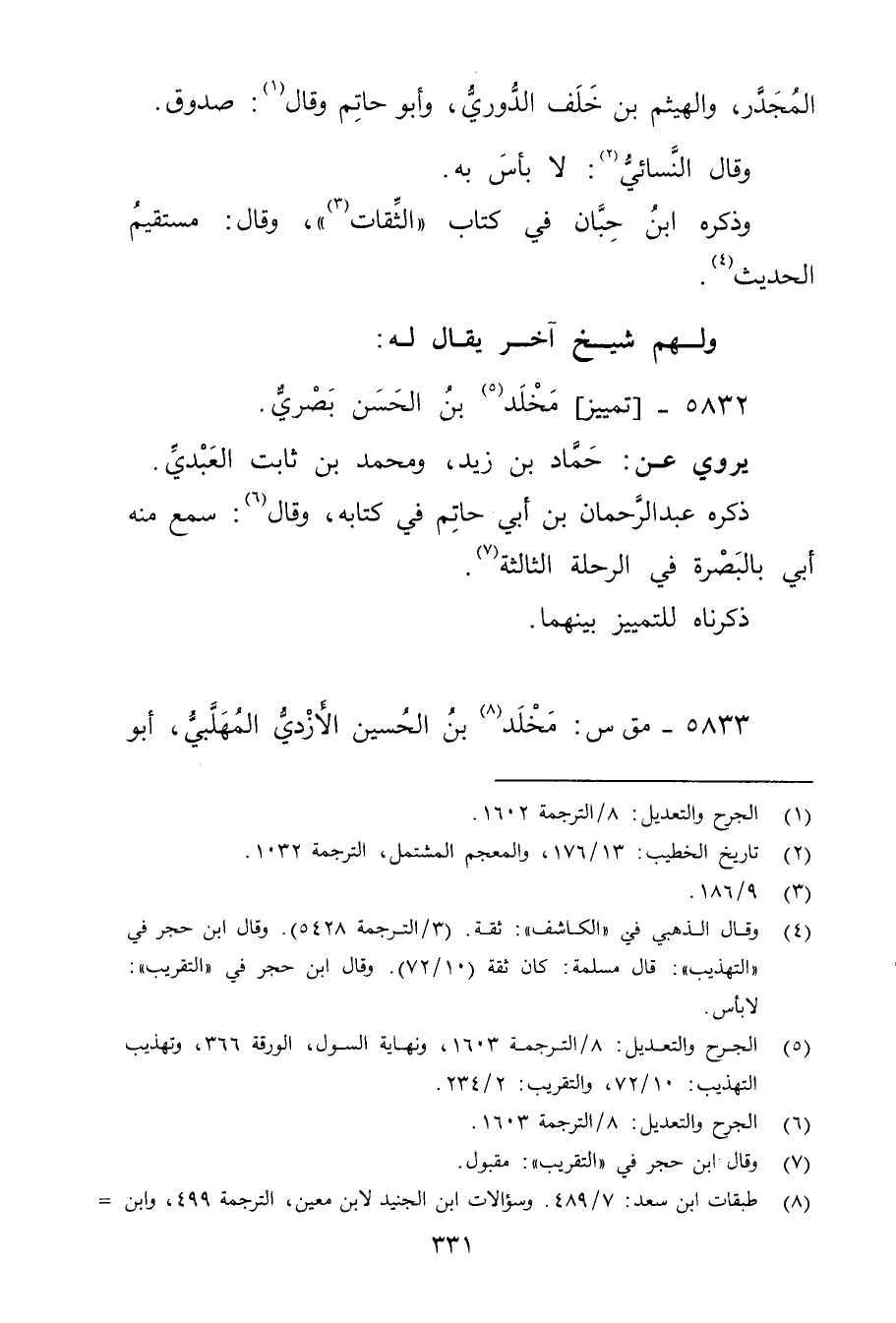 5832 - تمييز مخلد بن الْحَسَن بصري (5) .