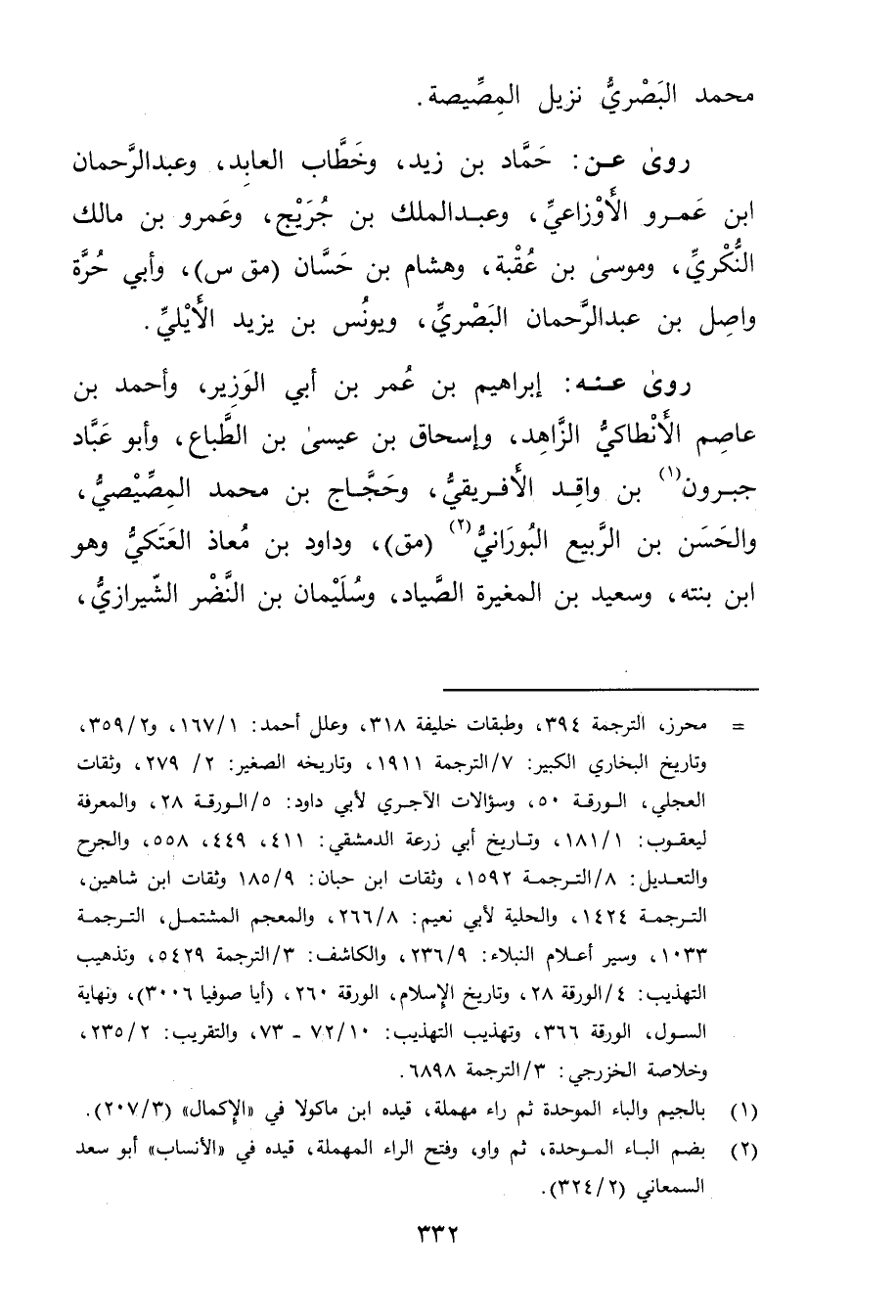 مُحَمَّد البَصْرِيّ نزيل المصيصة.
