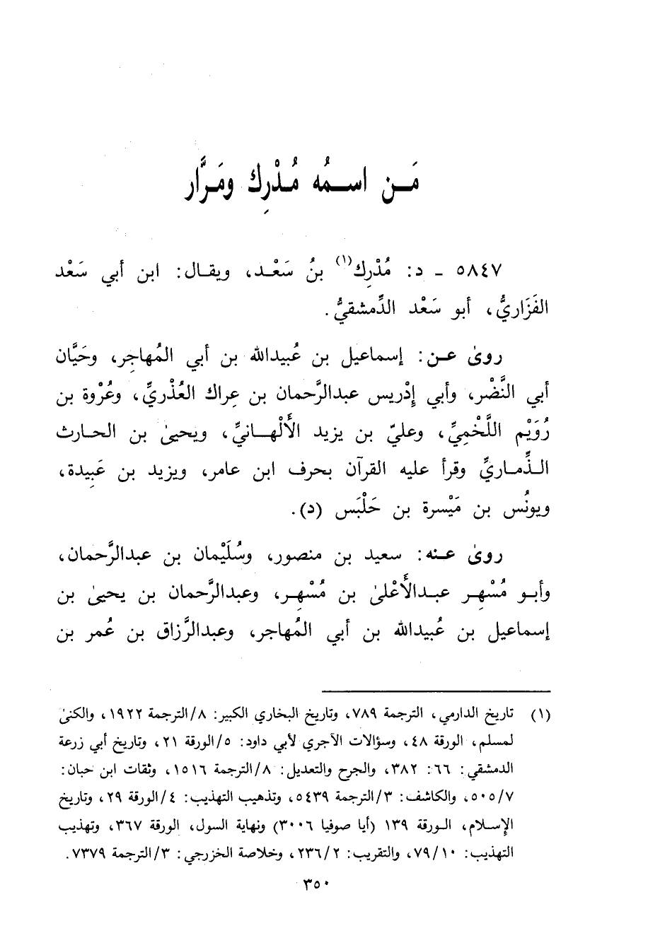 5847 - د: مدرك بن سعد (1) ، ويُقال: ابن أَبي سعد الفزاري، أَبُو سعد الدمشقي.