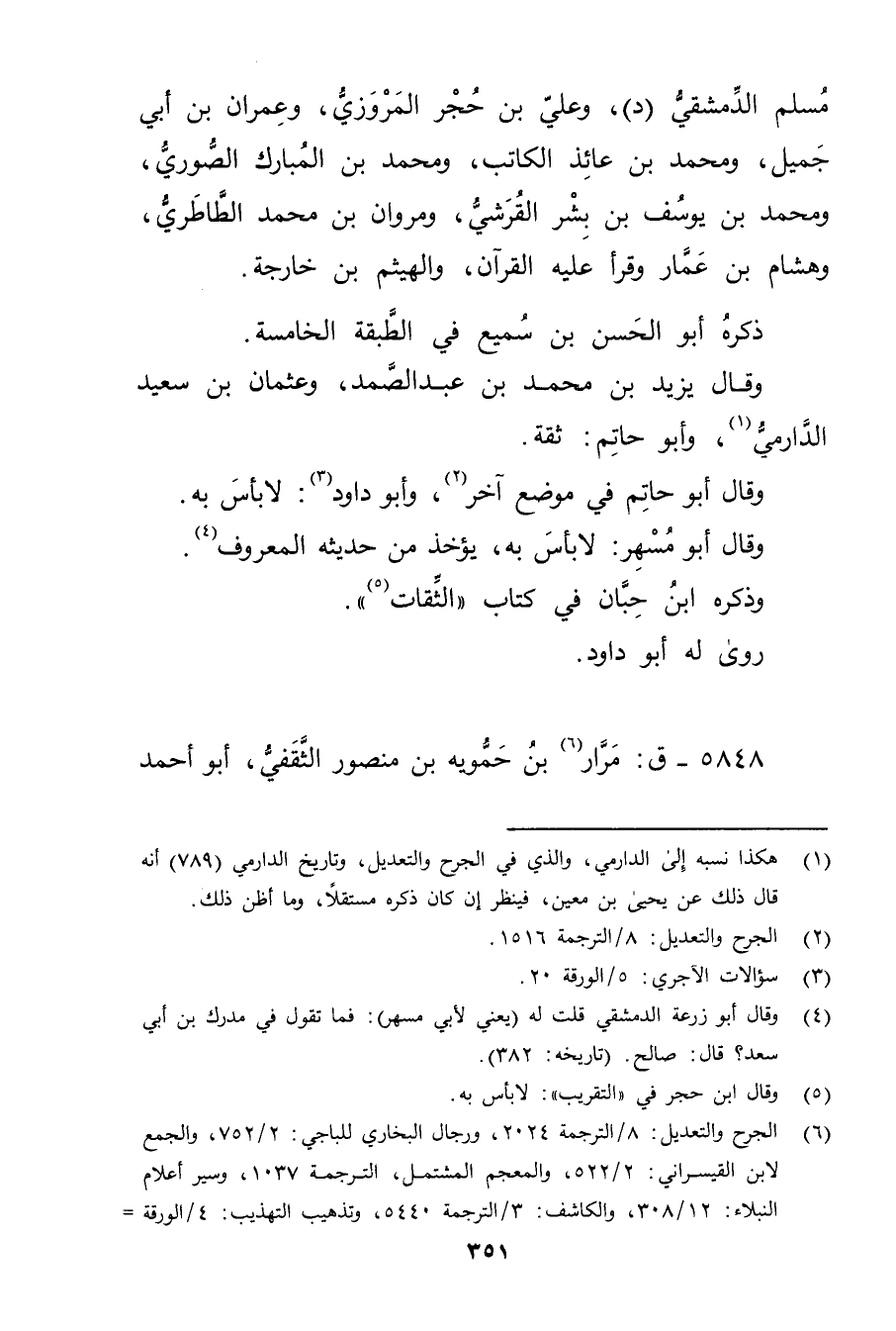 (1) هكذا نسبه إلى الدارمي، والذي في الجرح والتعديل، وتاريخ الدارمي (789) أنه قال ذلك عن يحيى بن مَعِين، فينظر إن كان ذكره مستقلا، وما أظن ذلك.
