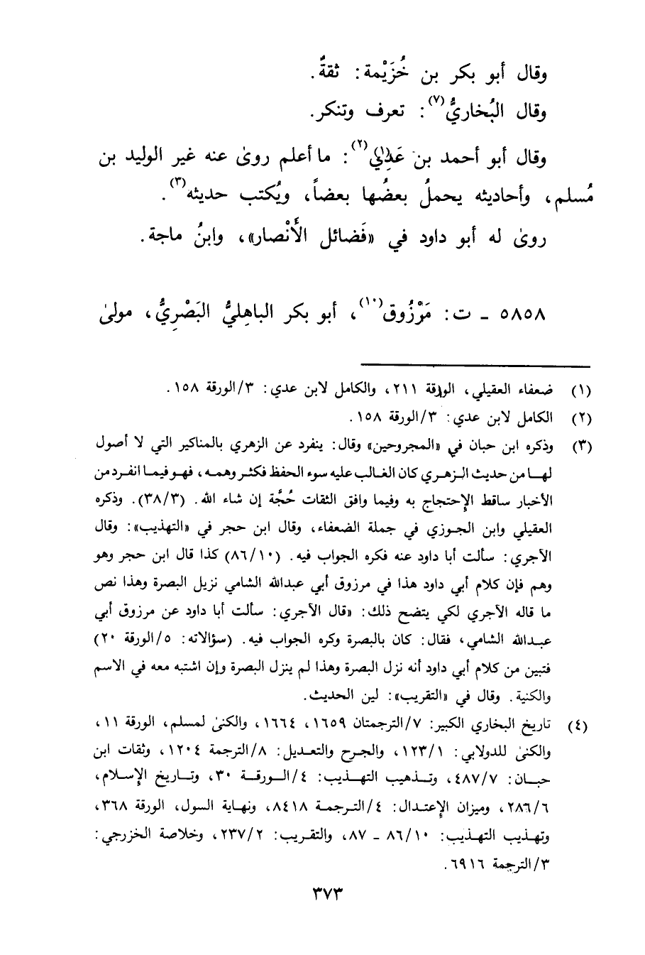 5858 - ت: مرزوق، أَبُو بكر الباهلي البَصْرِيّ (10) ، مولى