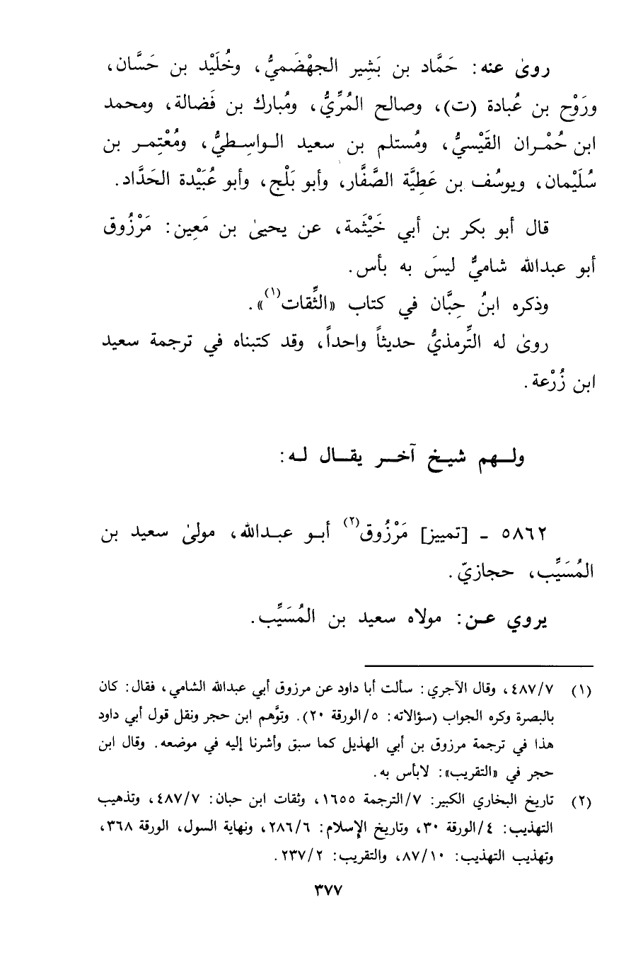 5862 - تمييز مرزوق أَبُو عَبْد الله (2) ، مولى سَعِيد بْن المُسَيَّب، حجازي.