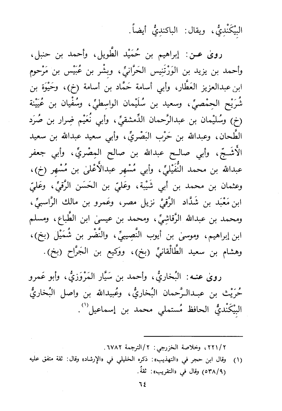 (1) وَقَال ابن حجر في "التهذيب ": ذكره الخليلي في "الارشاد "وَقَال: ثقة متفق عليه (9 / 538) وَقَال في "التقريب": ثقة.