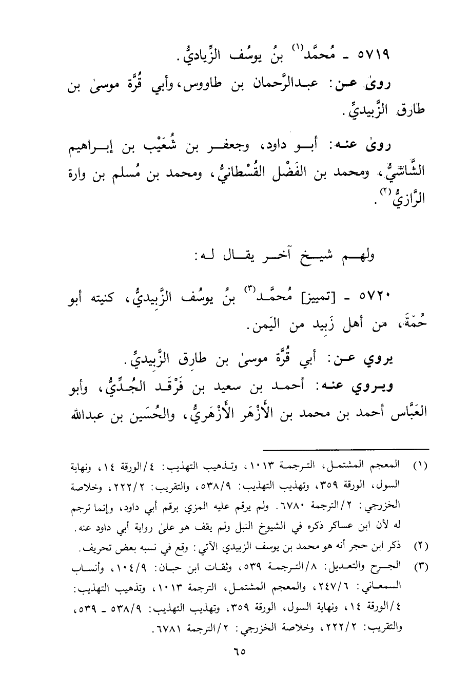 5720 - تمييز مُحَمَّد بن يوسف الزبيدي (3) ، كنيته أَبُو حمة، من أهل زبيد من اليمن.