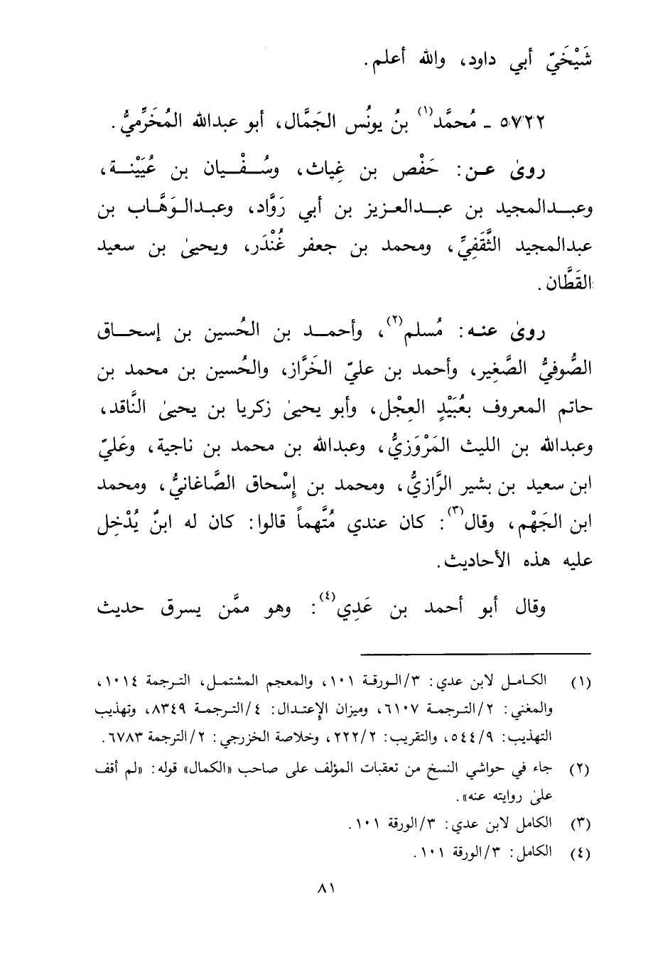 (3) الكامل لابن عدي: 3 / الورقة 101.