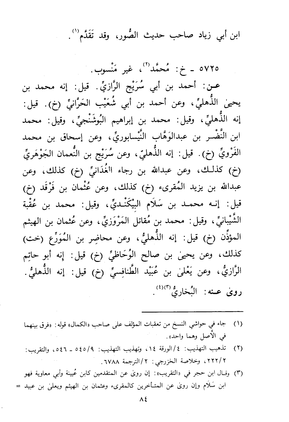 (3) وَقَال ابن حجر في "التقريب": إن روى عن المتقدمين كابن عُيَيْنَة وأبي معاوية فهو ابن سلام وإن روى عن المتأخرين كالمقرئ وعثمان بن الهيثم ويَعْلَى بن عُبَيد ومحاضر فهو محمد بن يحيى الذهلي واختلف في بعض هؤلاء. وانظر مقدمة فتح الباري: 234.