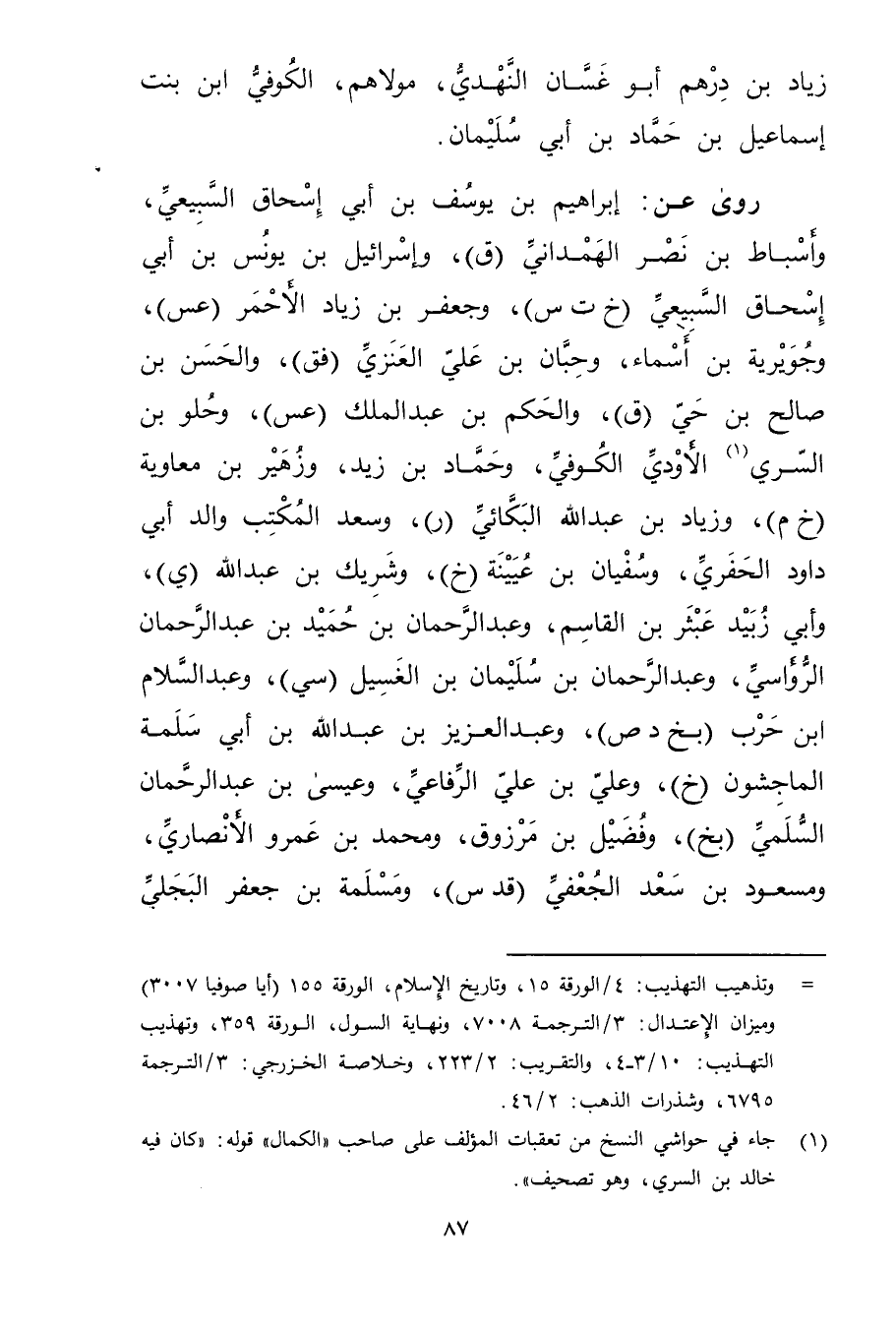 = وتذهيب التهذيب: 4 / الورقة 15، وتاريخ الاسلام، الورقة 155 (أيا صوفيا 3007) وميزان الاعتدال: 3 / الترجمة 7008، ونهاية السول، الورقة 359، وتهذيب التهذيب: 10 / 3 - 4، والتقريب: 2 / 223، وخلاصة الخزرجي: 3 / الترجمة 6795، وشذرات الذهب: 2 / 46.