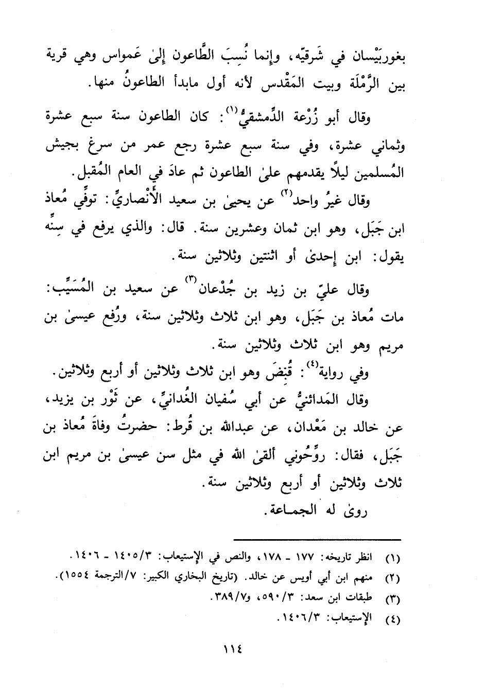 وَقَال علي بْنُ زَيْدِ بْنِ جُدْعَانَ (3) عَنِ سَعِيد بْن المُسَيَّب: مات معاذ بْن جبل، وهو ابْن ثلاث وثلاثين سنة، ورفع عيسى بْن مريم وهو ابْن ثلاث وثلاثين سنة.