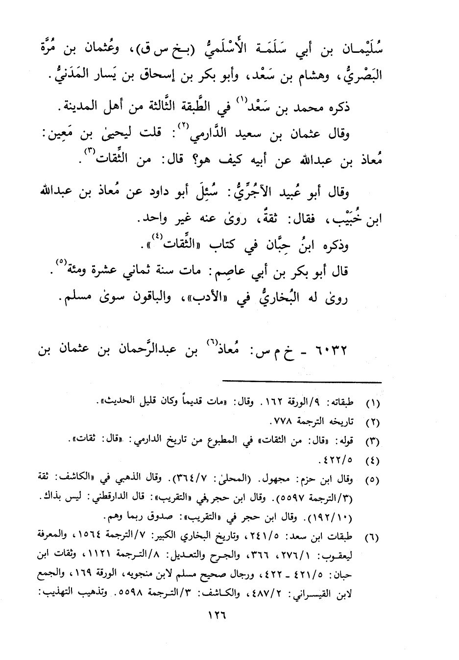 6032 - خ م س: معاذ بن عَبْد الرحمن بن عثمان (6) بْن