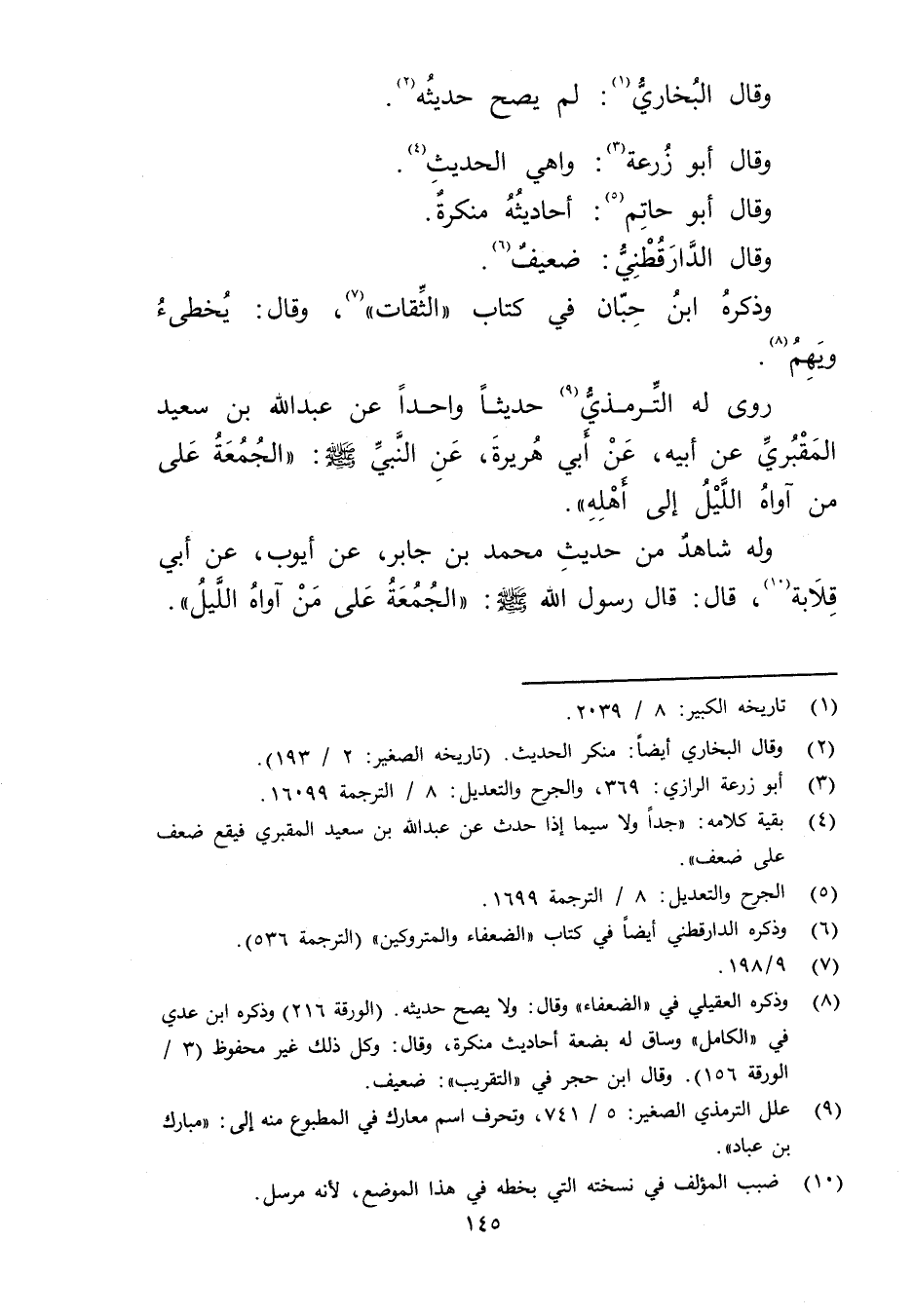 ولَهُ شَاهِدٌ مِنْ حَدِيثِ مُحَمَّدِ بْنِ جَابِرٍ، عَنْ أَيُّوبَ، عَن أَبِي قِلابَةَ (10) قال: قال رسول الله (ص) : "الْجُمُعَةُ عَلَى مَنْ آوَاهُ اللَّيْلُ.