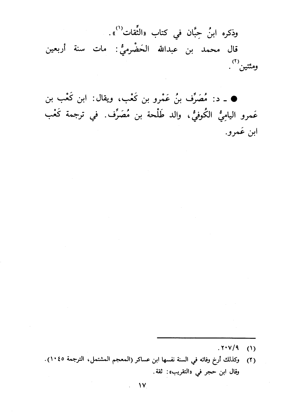 (2) وكذلك أرخ وفاته في السنة نفسها ابن عساكر (المعجم المشتمل، الترجمة 1045) . وَقَال ابن حجر في "التقريب": ثقة.