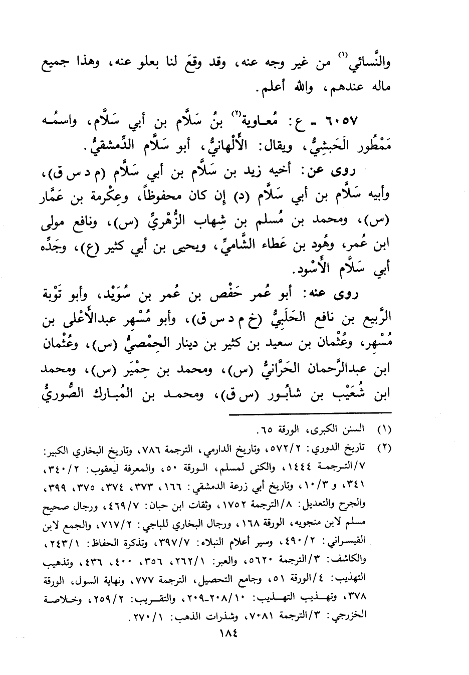 6057 - ع: معاوية بْن سلام بْن أَبي سلام (2) ، واسمه ممطور الحبشي ويُقال: الألهاني أَبُو سلام الدمشقي.