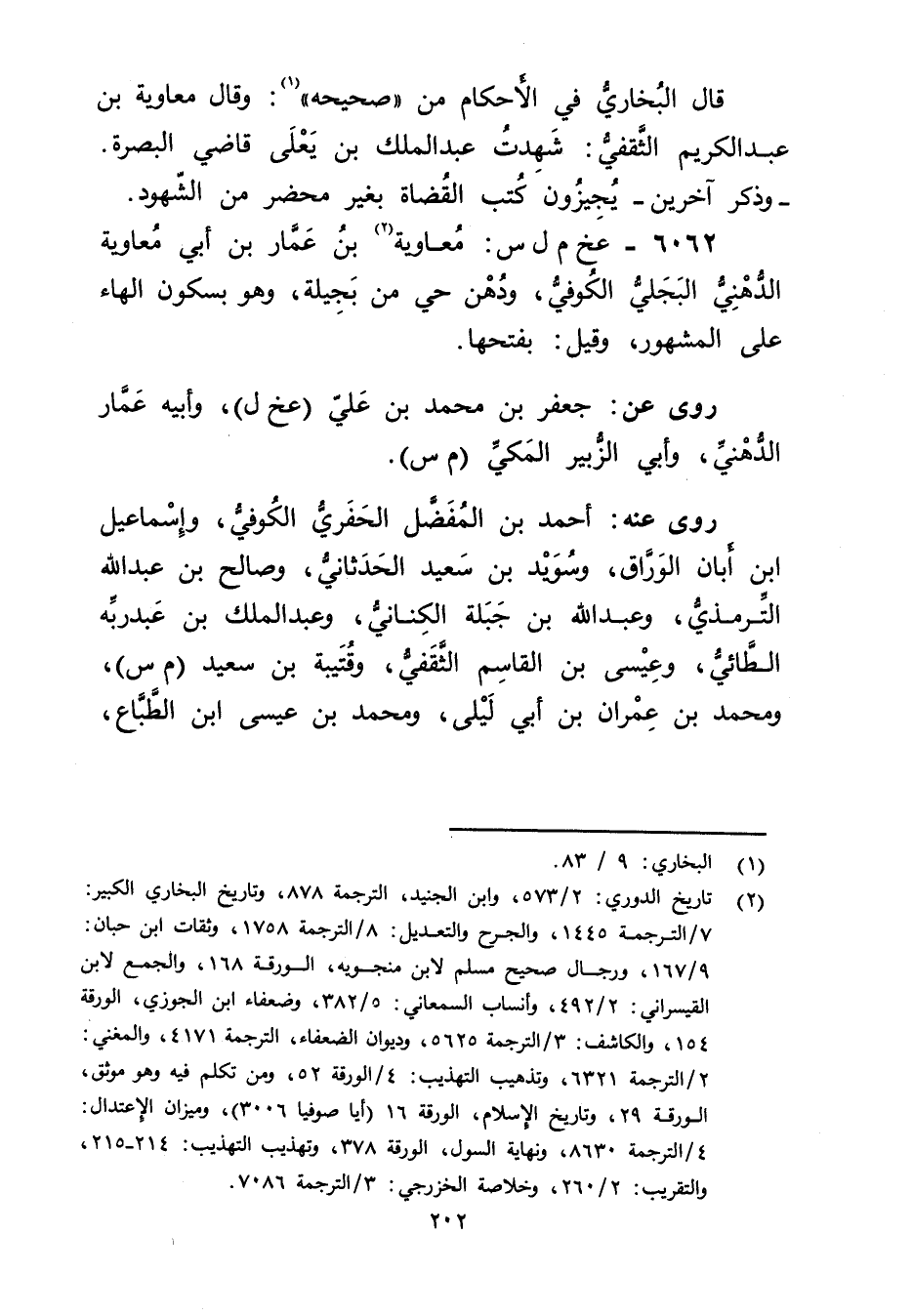6062 - عخ م ل س: معاوية بن عمار بْن أَبي معاوية الدهني البجلي الكوفي (2) ، ودهن حي من بجيلة. وهو بسكون الهاء على المشهور، وقيل: بفتحها.