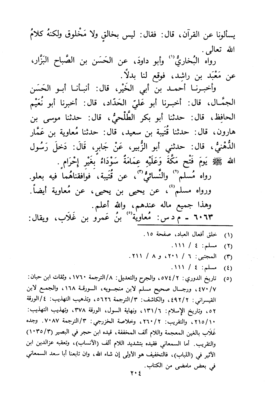 (1) خلق أفعال العباد، صفحة 15.