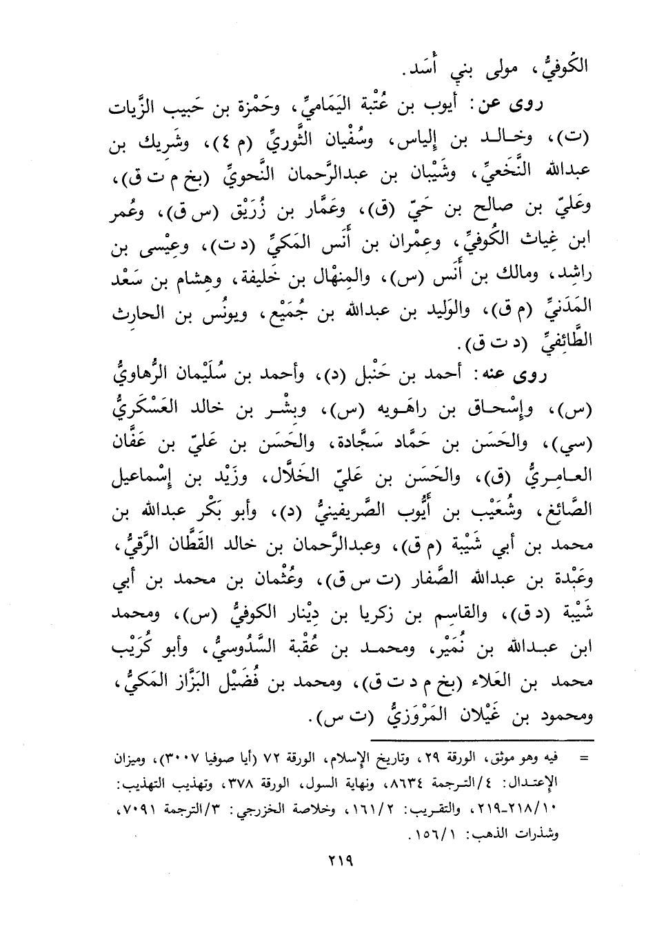 = فيه وهو موثق، الورقة 29، وتاريخ الاسلام، الورقة 72 (أيا صوفيا 3007) وميزان الاعتدال: 4 / الترجمة 8634، ونهاية السول، الورقة 378، وتهذيب التهذيب: 10 / 218 - 219، والتقريب: 2 / 161، وخلاصة الخزرجي: 3 / الترجمة 7091، وشذرات الذهب: 1 / 156،