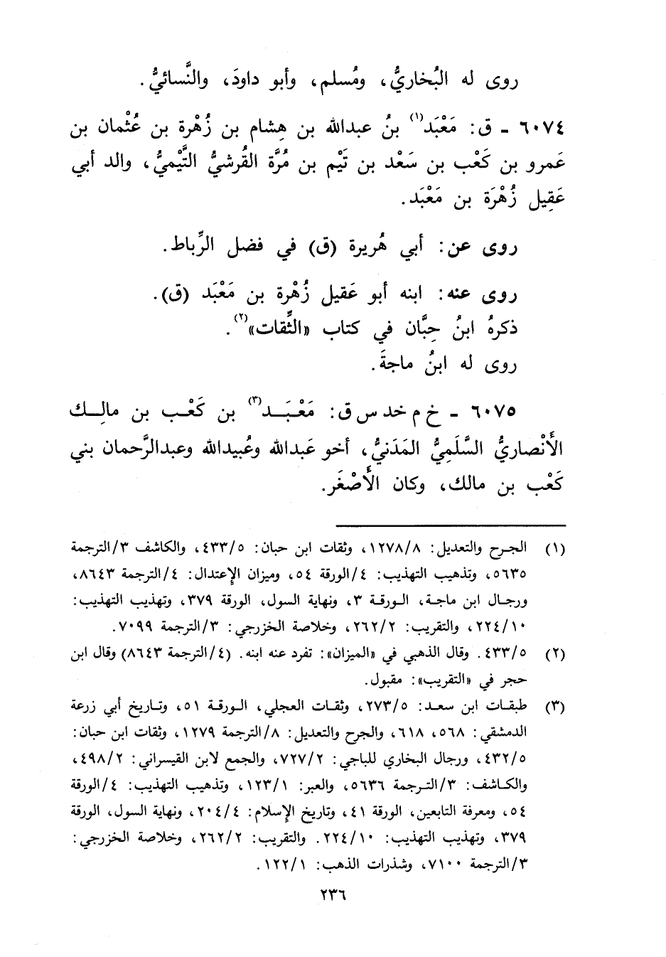 6075 - خ م خد س ق: معبد بن كعب بن مالك الأَنْصارِيّ السلمي المدني (3) أخو عَبد اللَّهِ وعُبَيد اللَّهِ وعبد الرحمن بني كعب بن مالك، وكان الاصغر.