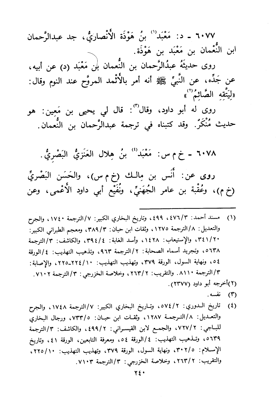 6077 - د: معبد بن هوذة الأَنْصارِيّ جد عبد الرحمن ابن النعمان (1) بن معبد بن هوذة