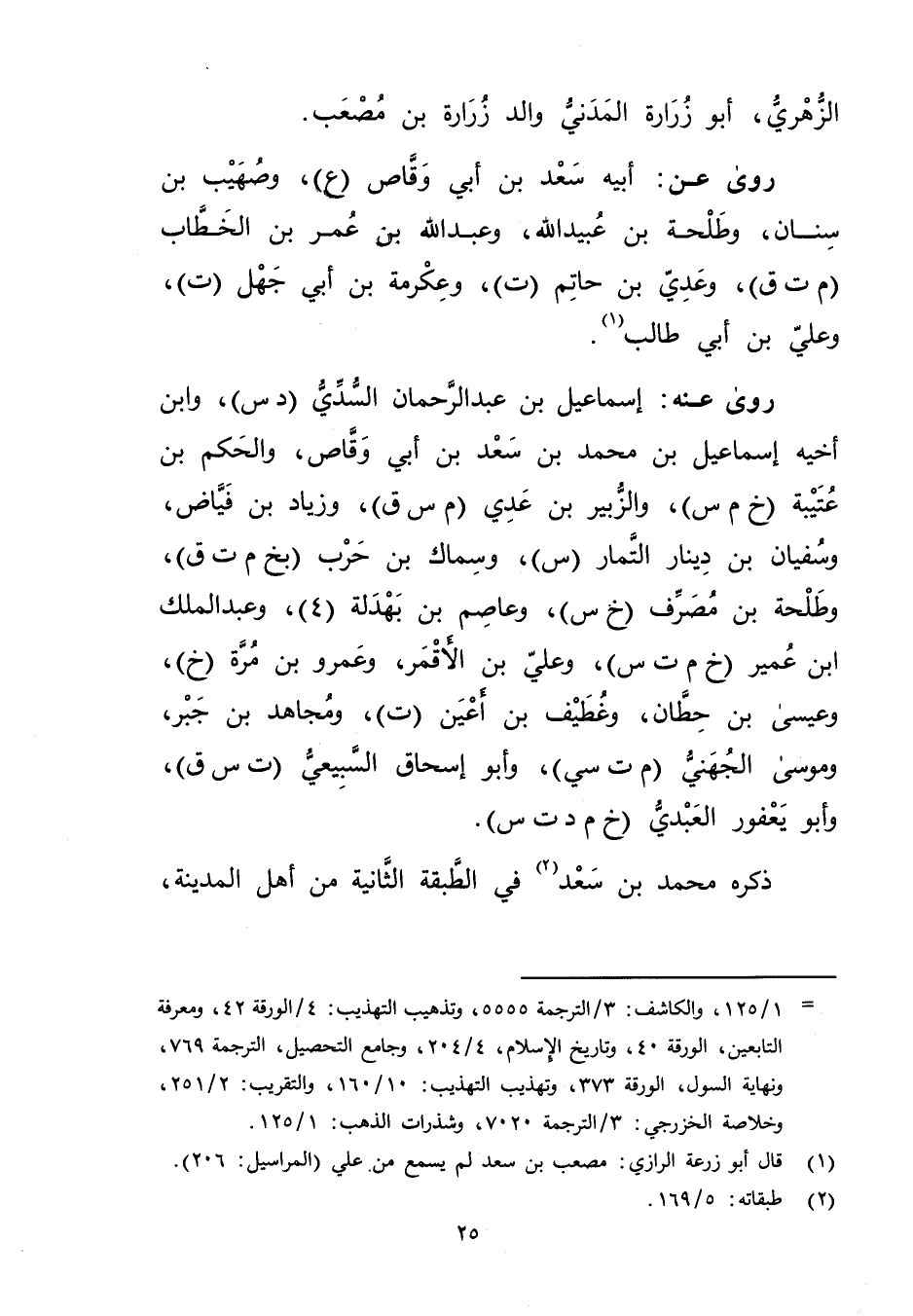 (1) قال أبو زُرْعَة الرازي: مصعب بن سعد لم يسمع من علي (المراسيل: 206)