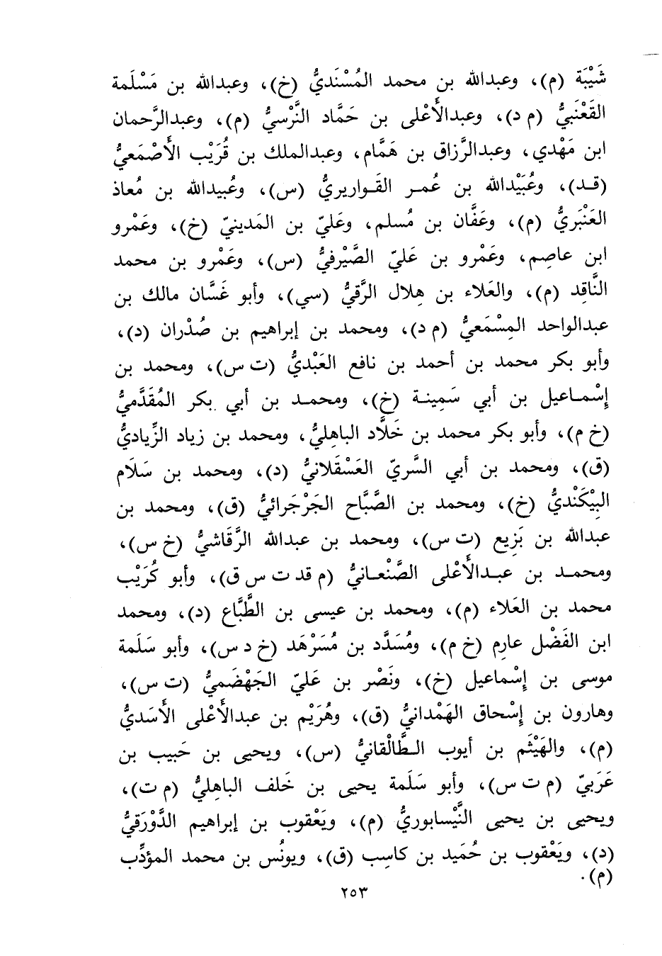 شَيْبَة (م) ، وعَبْد اللَّهِ بْن محمد المسندي (خ) ، وعبد الله بْن مسلمة القعنبي (م د) ، وعبد الأعلى بْن حَمَّاد النرسي (م) ، وعبد الرحمن ابن مهدي، وعبد الرزاق بْن همام، وعبد الملك بْن قريب الأَصْمَعِيّ (قد) ، وعُبَيد الله بْن عُمَر القواريري (س) , وعُبَيد الله بْن معاذ العنبري (م) ، وعفان بْن مسلم , وعلي بْن المديني (خ) ، وعَمْرو ابن عاصم، وعَمْرو بْن علي الصيرفي (س) ، وعَمْرو بن مُحَمَّد الناقد (م) ، والعلاء بْن هلال الرَّقِّيّ (سي) ، وأبو غسان مالك بْن عبد الواحد المسمعي (م د) ، ومحمد بْن إبراهيم بْن صدران (د) ، وأبو بكر مُحَمَّد بْن أَحْمَدَ بْنِ نافع العبدي (ت س) ، ومحمد بْن إِسْمَاعِيل بْن أَبي سمينة (خ) ، ومحمد بْن أَبي بكر المقدمي (خ م) ، وأبو بكر مُحَمَّد بْن خلاد الباهلي، ومحمد بن وزياد الزيادي (ق) ، ومحمد بْن أَبي السري العسقلاني (د) ، ومحمد بن سلام البيكندي (خ) ، ومحمد بْن الصباح الجرجرائي (ق) ، ومحمد بْن عَبد الله بْن بزيع (ت س) , ومحمد بْن عَبد اللَّهِ الرقاشي (خ س) ، ومحمد بْن عبد الاعلى الصنعاني (م قد ت س ق) ، وأبو كريب مُحَمَّد بْن العلاء (م) ، ومحمد بْن عِيسَى بن الطباع (د) ، ومحمد ابن الفضل عارم (خ م) ومسدد بن مسرهد (خ د س) وأبو سلمة موسى بْن إِسْمَاعِيل (خ) ، ونصر بْن عَلِيٍّ الجهضمي (ت س) ، وهارون بْن إسحاق الهمداني (ق) ، وهريم بن عبد الاعلى الأسدي (م) ، والهيثم بْن أيوب الطالقاني (س) ، ويحيى بْن حبيب بْن عربي (م ت س) ، وأَبُو سلمة يحيى بْن خلف الباهلي (م ت) ، ويحيى بْن يَحْيَى النيسابوري (م) ، ويعقوب بْن إِبْرَاهِيم الدورقي (د) ، ويعقوب بْن حميد بْن كاسب (ق) ، ويونس بْن مُحَمَّد المؤدب (م) ،