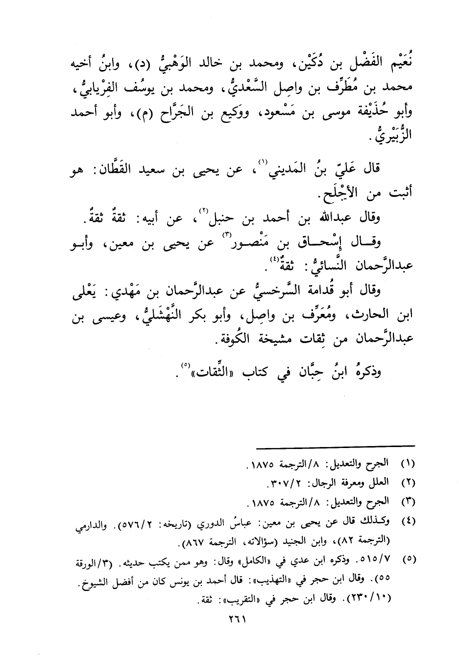 (4) وكذلك قال عن يحيى بن مَعِين: عباس الدوري (تاريخه: 2 / 576) والدارمي (الترجمة 82) وابن الجنيد (سؤالاته، الترجمة 867) .