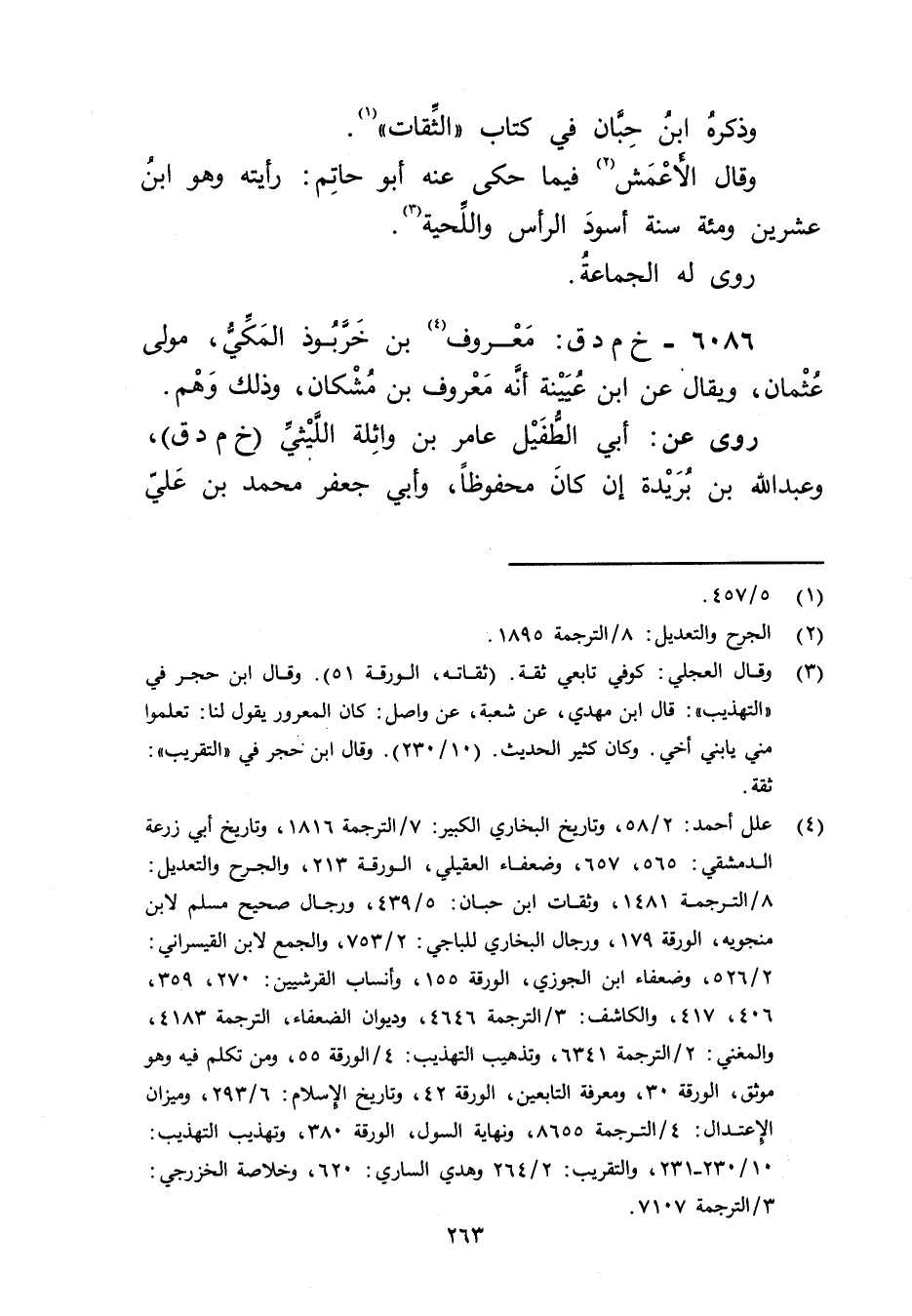 6086 - خ م د ق: معروف بن خربوذ المكي (4) ، مولى عثمان، ويُقال عَن أبي عُيَيْنَة أنه معروف بْن مشكان، وذلك وهم.