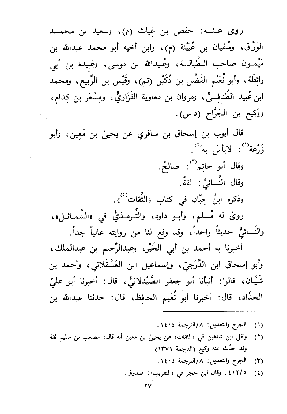 (1) الجرح والتعديل: 8 / الترجمة 1404،