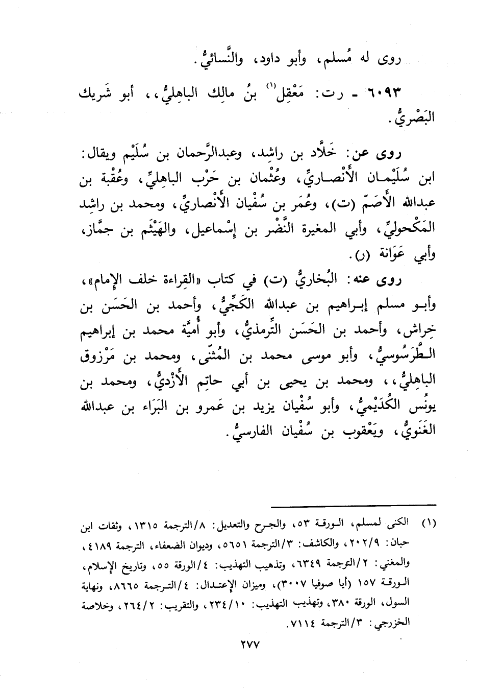 6093 - ر ت: معقل بن مالك الباهلي (1) ، أَبُو شَرِيك البَصْرِيّ.