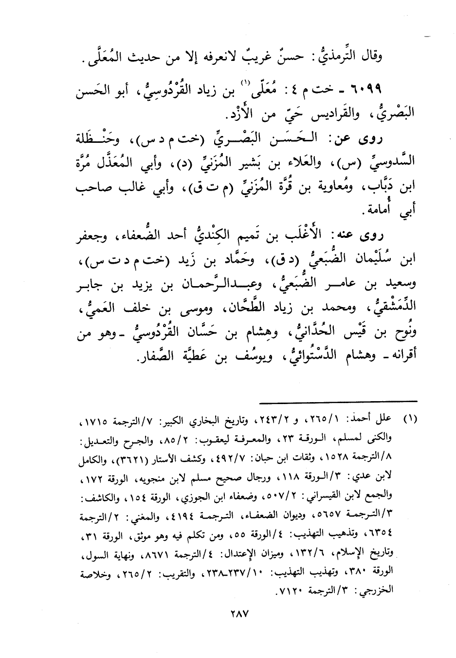 6099 - خت م 4: معلى بن زياد القردوسي (1) ، أَبُو الحسن البَصْرِيّ والقراديس حي من الأزد.