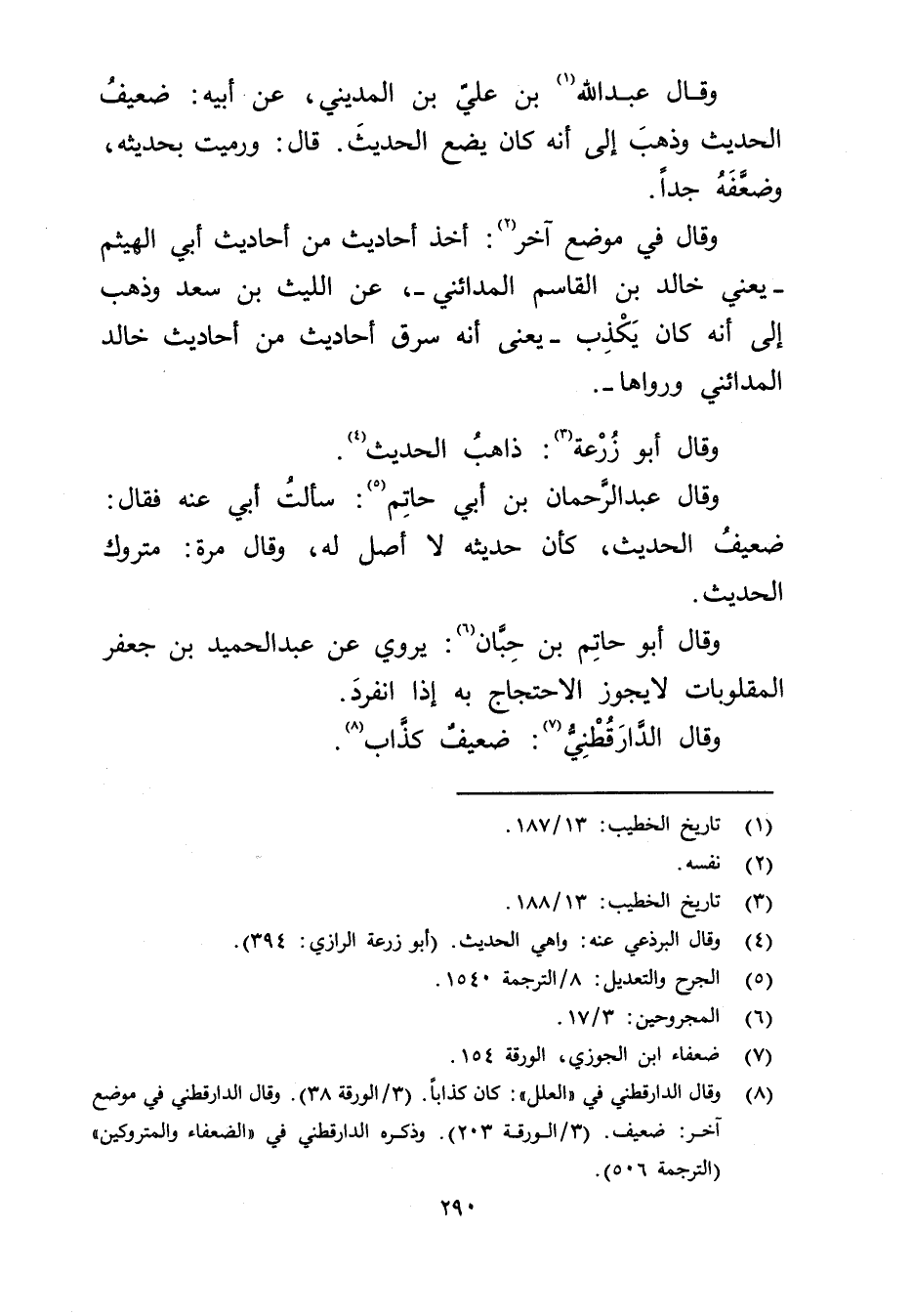 (8) وَقَال الدَّارَقُطنِيّ في " العلل" كان كذابا. (3 / الورقة 38) وَقَال الدَّارَقُطنِيّ في موضع آخر: ضعيف. (3 / الورقة 203) وذكره الدَّارَقُطنِيّ في " الضعفاء والمتروكين" (الترجمة 506) .