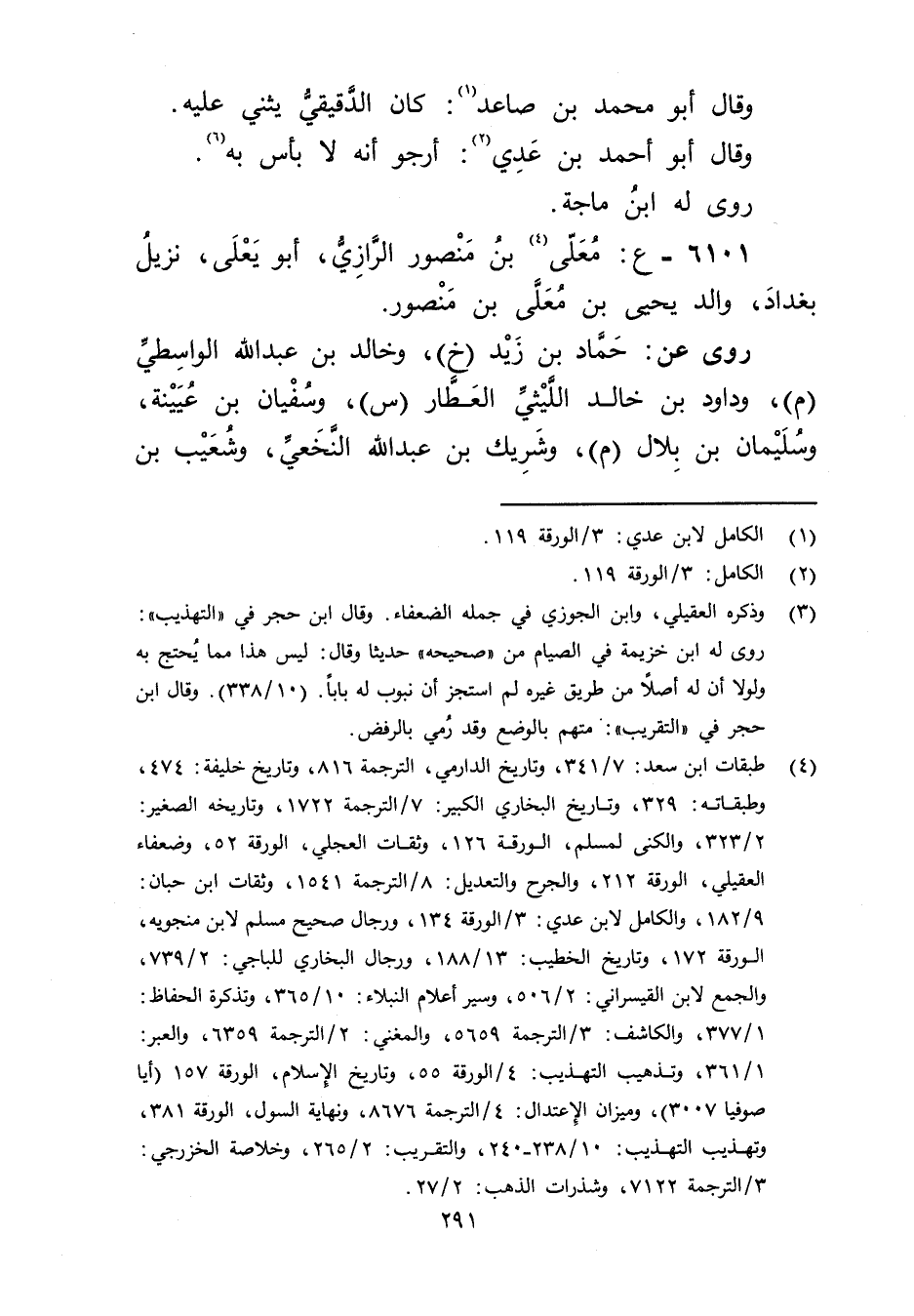 6101 - ع: معلى بن منصور الرازي (4) ، أَبُو يَعْلَى، نزيل بغداد، والد يحيى بْن معلى بْن منصور.