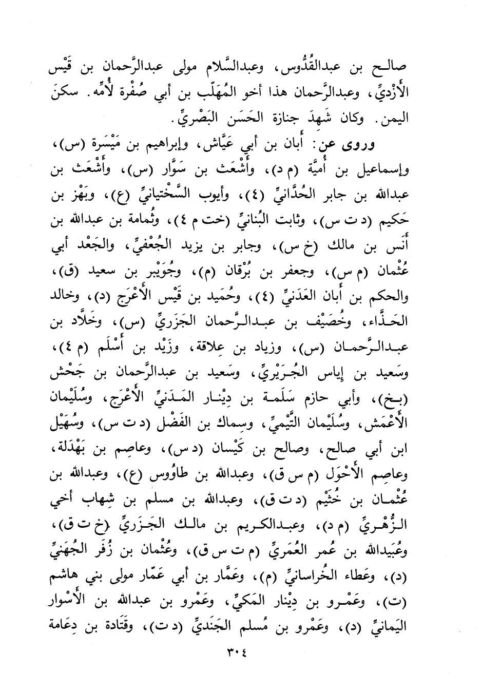 صالح بْن عَبْد القدوس، وعبد السلام مولى عَبْد الرحمن بْن قيس الأزدي، وعبد الرحمن هَذَا أخو المهلب بْن أَبي صفرة لأمه. سكن اليمن. وكان شهد جنازة الحسن البَصْرِيّ.
