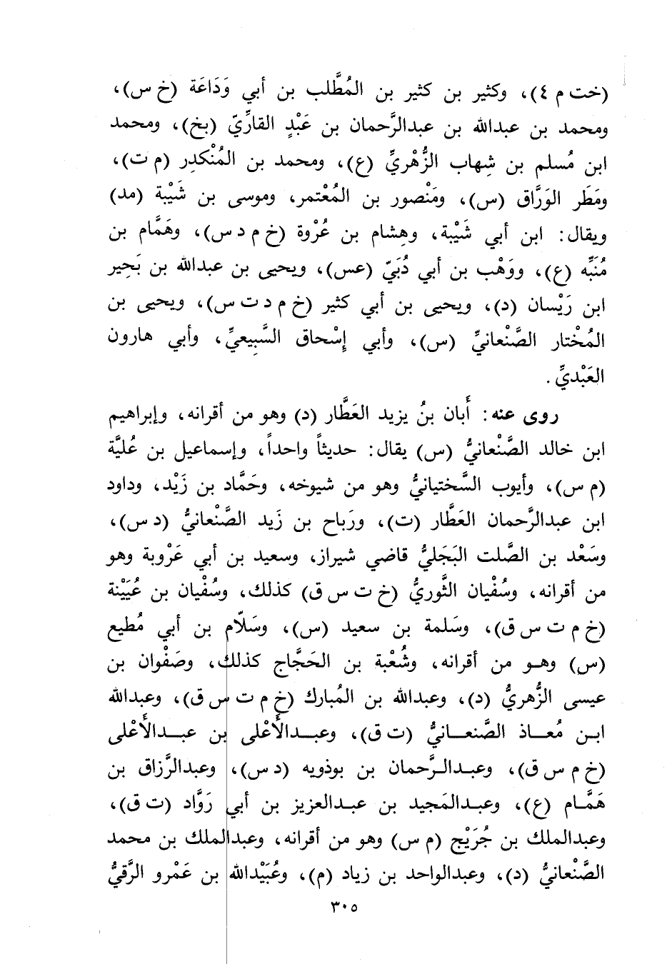 (خت م 4) وكثير بْن كثير بن المطلب بن أَبي وداعة (خ س) ، ومحمد بْن عَبد الله بْن عَبْد الرحمن بْن عبد القاري (بخ، ومحمد ابن مسلم بْن شهاب الزُّهْرِيّ (ع) ، ومحمد بْن المنكدر (م ت) ، ومطر الوراق (س) ، ومنصور بْن المعتمر، وموسى بْن شَيْبَة (مد) ويُقال: ابْن أَبي شَيْبَة. وهشام بن عروة (خ م دس) وهمام بْن منبه (ع) ووهب بن أَبي دبي (عس) ، وَيَحْيَى بْن عَبد اللَّهِ بن بحير ابن ريسان (د) ، ويحيى بْن أَبي كثير (خ م د ت س) ، ويحيى بْن المختار الصنعاني (س) ، وأَبِي إِسْحَاق السبيعي، وأَبِي هارون العبدي.