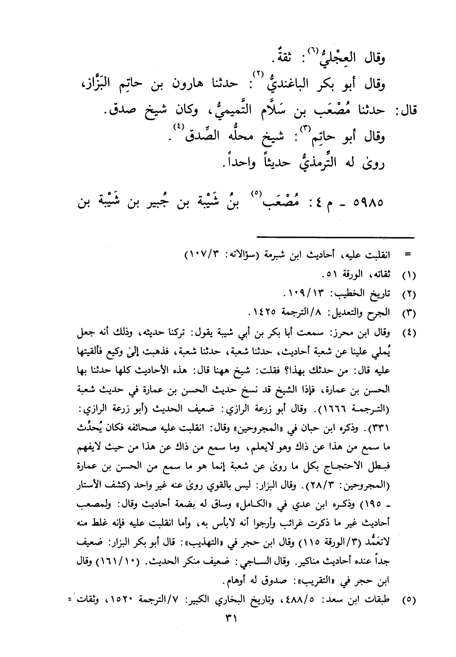 5985 - م 4: مصعب بْن شَيْبَة بْن جبير بن شَيْبَة (5) بْن