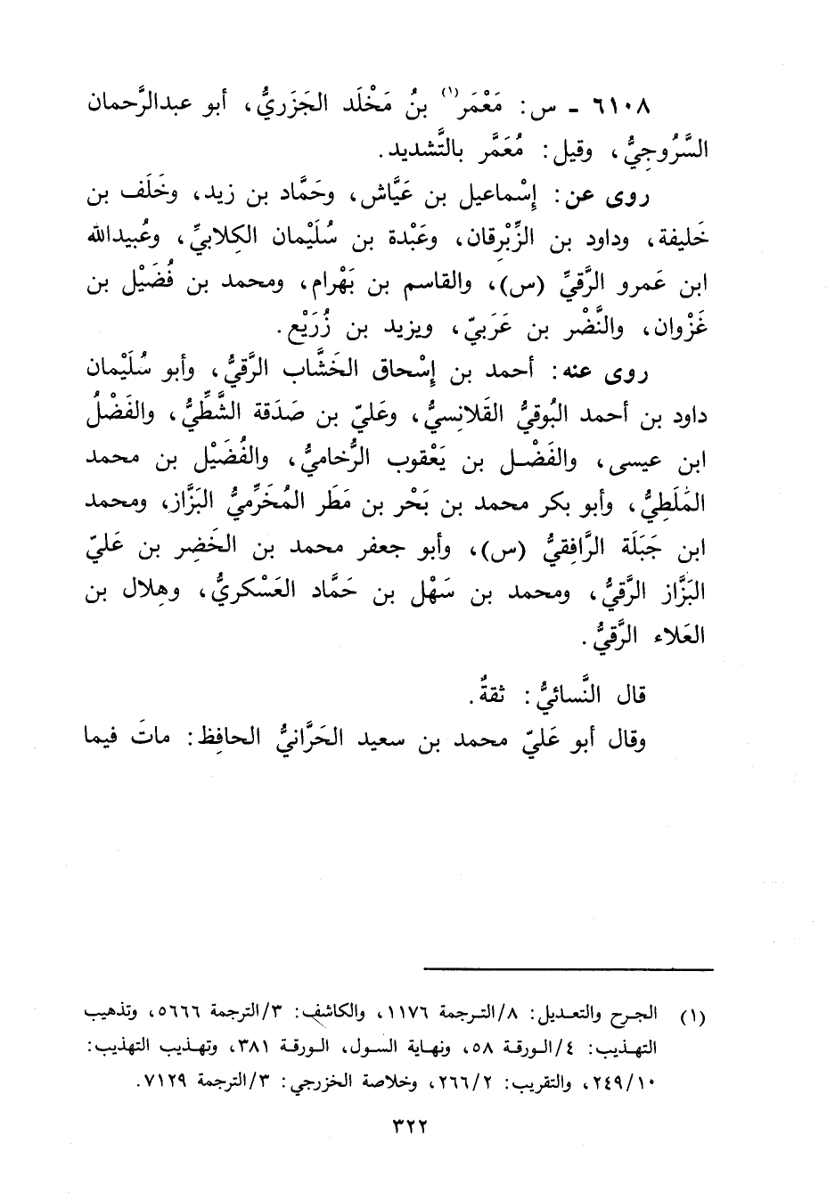 6108 - س: معمر بن مخلد الجزري (1) ، أَبُو عَبْد الرحمن السروجي، وقيل: معمر بالتشديد.