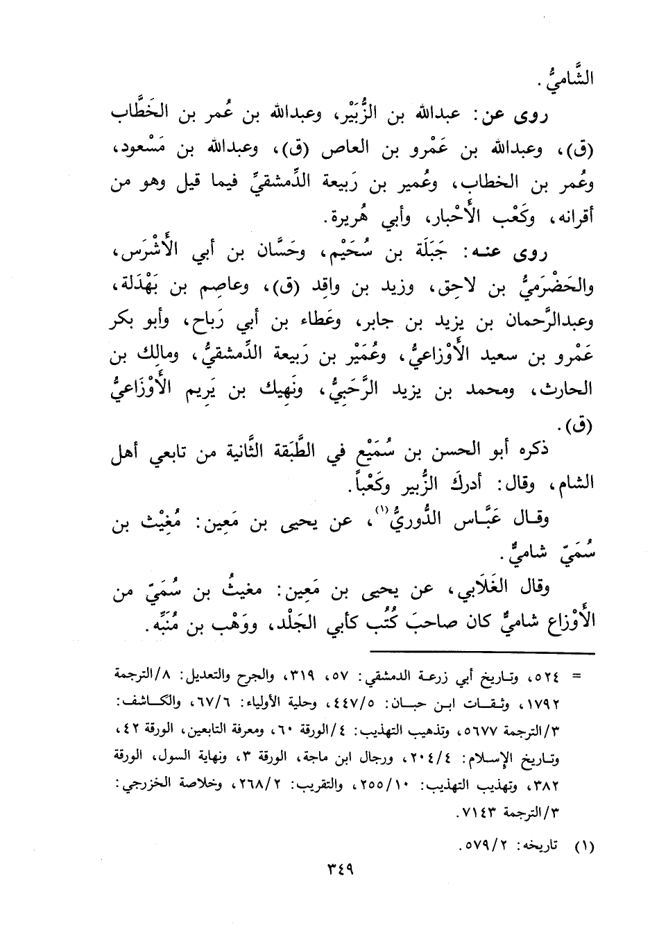 = 524، وتاريخ أبي زرعة الدمشقي: 57، 319، والجرح والتعديل: 8 / الترجمة 1792، وثقات ابن حبان: 5 / 447، وحلية الاولياء 6 / 67، والكاشف: 3 / الترجمة 5677، وتذهيب التهذيب: 4 / الورقة 60، ومعرفة التابعين، الورقة 42، وتاريخ الاسلام: 4 / 204، ورجال ابن ماجة، الورقة 3، ونهاية السول، الورقة 382، وتهذيب التهذيب: 10 / 255، والتقريب: 2 / 268، وخلاصة الخزرجي: 3 / الترجمة 7143.