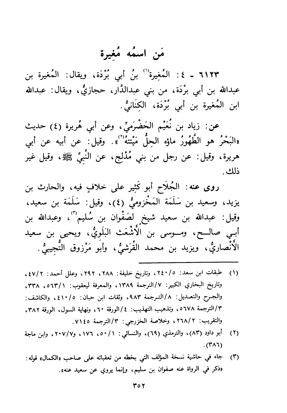 6123 - 4: المغيرة بن أَبي بردة (1) ، ويُقال: المغيرة بْن عَبد اللَّهِ بْن أَبي بردة، من بني عبد الدار، حجازي، ويُقال: عَبد اللَّهِ بْن المغيرة بْن أَبي بردة، الكناني.