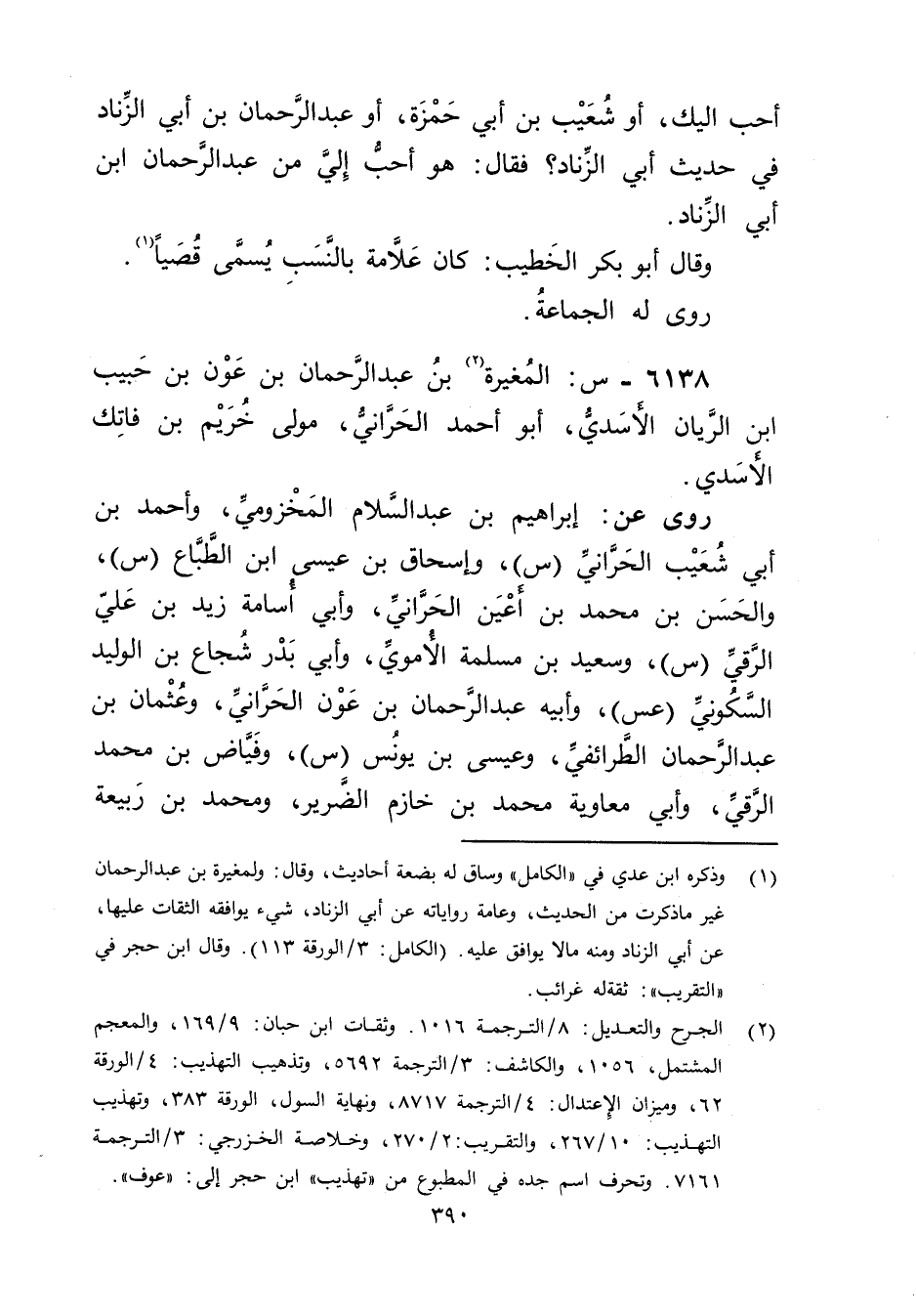 6138 - س: المغيرة بْن عَبْدِ الرَّحْمَنِ بْن عون بن حبيب ابن الريان الأسدي (2) ، أَبُو أَحْمَد الحراني، مولى خريم بْن فاتك الأسدي.