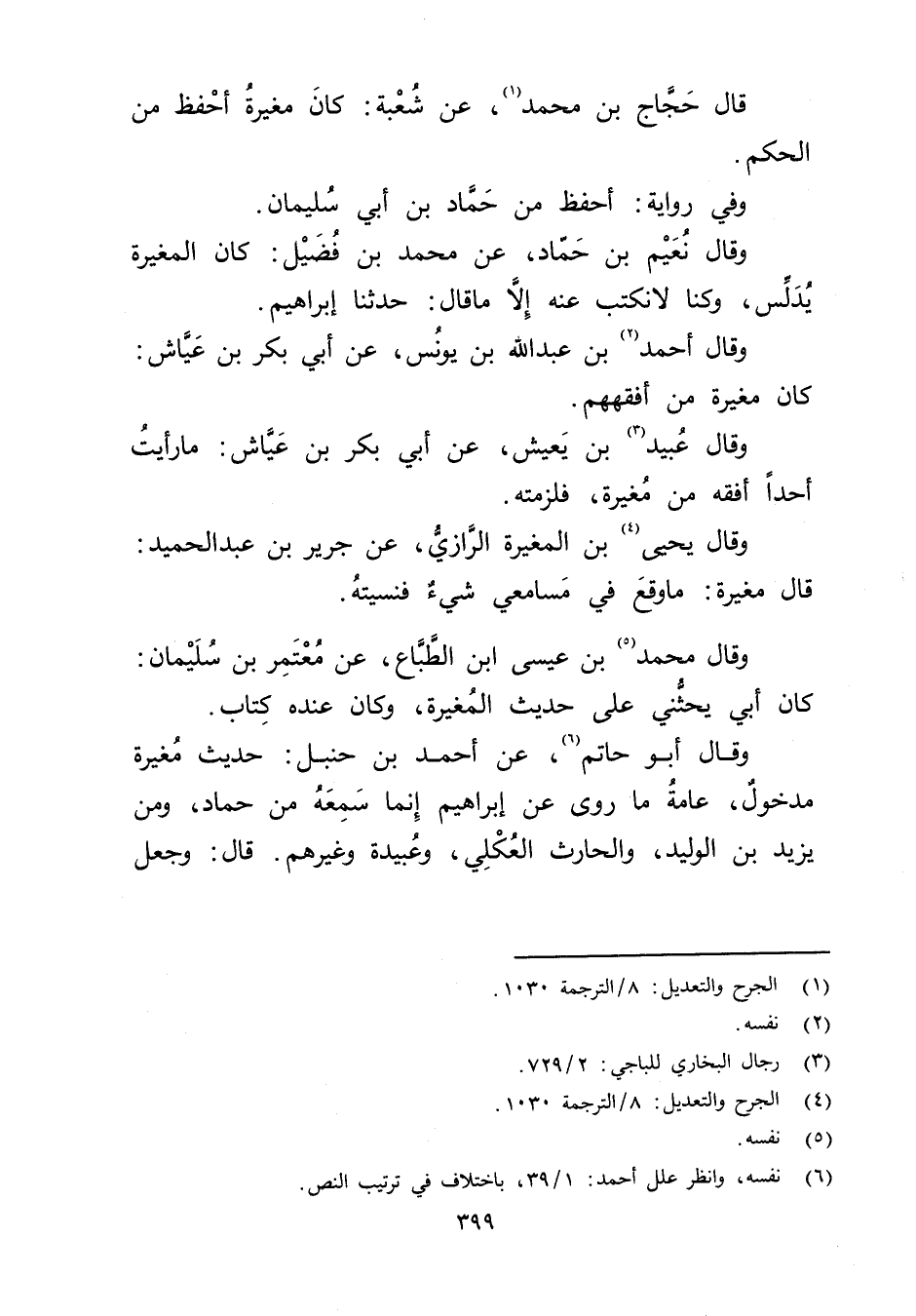 (6) نفسه، وانظر علل أحمد: 1 / 39، باختلاف في ترتيب النص.