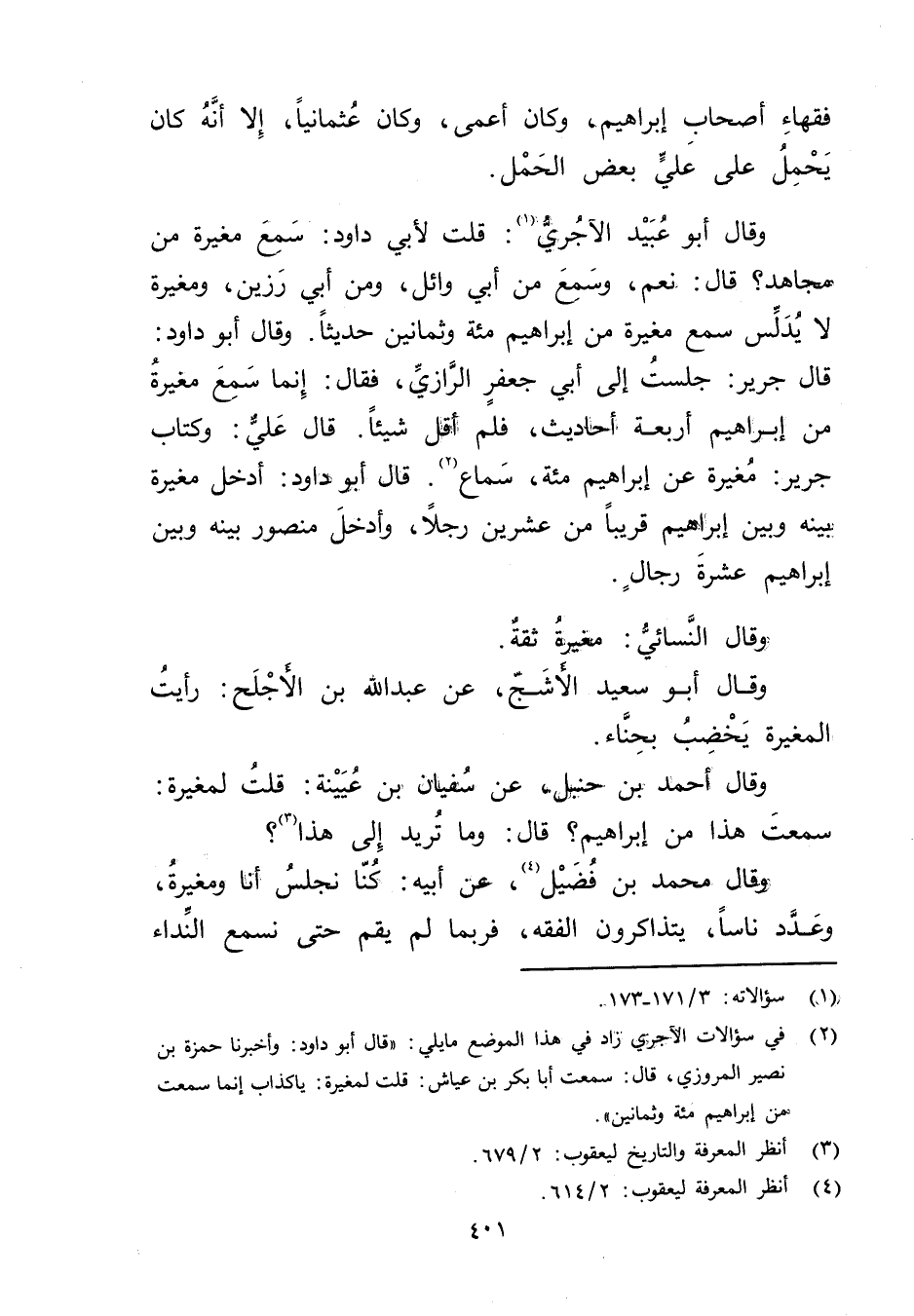 (2) في سؤالات الآجري زاد في هذا الموضع ما يلي: قال أبو داود: وأخبرنا حمزة بن نصير المروزي، قال: سمعت أبا بكر بْن عياش: قلت لمغيرة: يا كذاب إنما سمعت من إبراهيم مئة وثمانين.