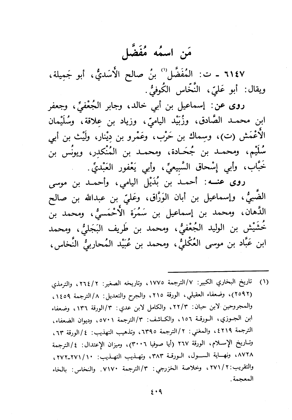6147 - ت: المفضل بن صالح الأسدي (1) ، أَبُو جميلة، ويُقال: أَبُو علي، النخاس الكوفي.