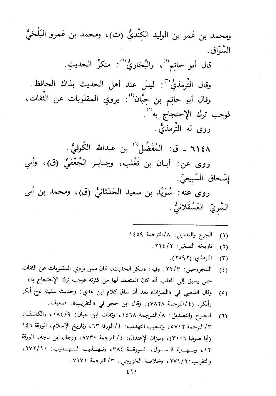 (6) الجرح والتعديل: 8 / الترجمة 1469، وثقات ابن حبان: 9 / 184، والكاشف: 3 / الترجمة 5702، وتذهيب التهذيب: 4 / الورقة 63، وتاريخ الاسلام، الورقة 146، (أيا صوفيا 3006) وميزان الاعتدال: 4 / الترجمة 8730، ورجال ابن ماجة، الورقة 12، ونهاية السول، الورقة 384، وتهذيب التهذيب: 10 / 272، والتقريب: 2 / 271، وخلاصة الخزرجي: 3 / الترجمة 7171.