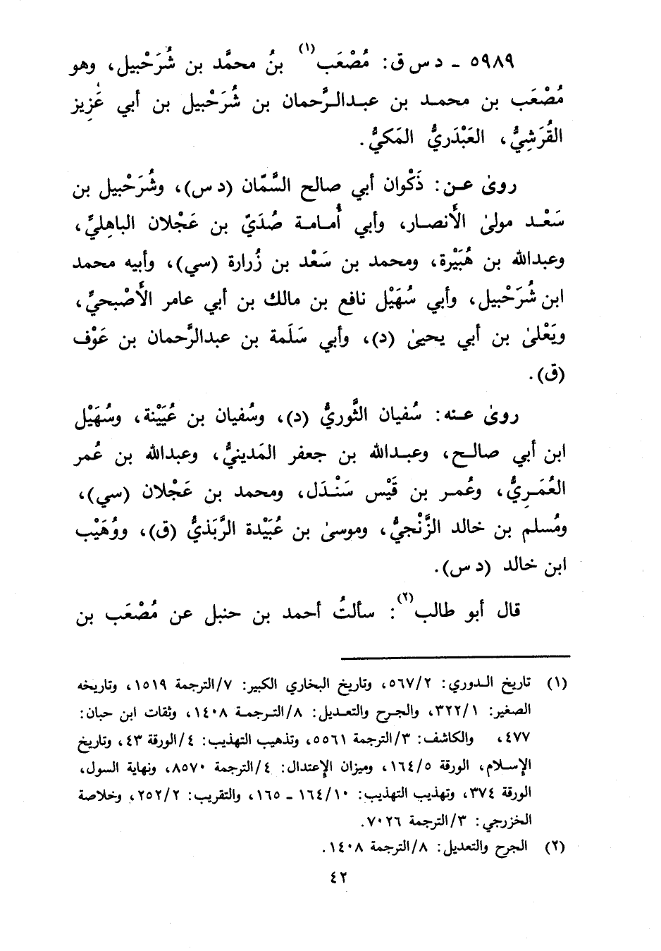 قال أَبُو طالب (2) : سألت أَحْمَد بْن حنبل عن مصعب بْن