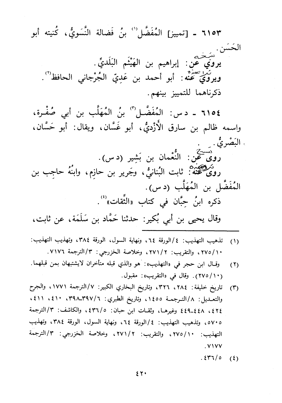 6153 - تمييز المفضل بن فضالة النسوي (1) ، كنيته أبو الحسن.