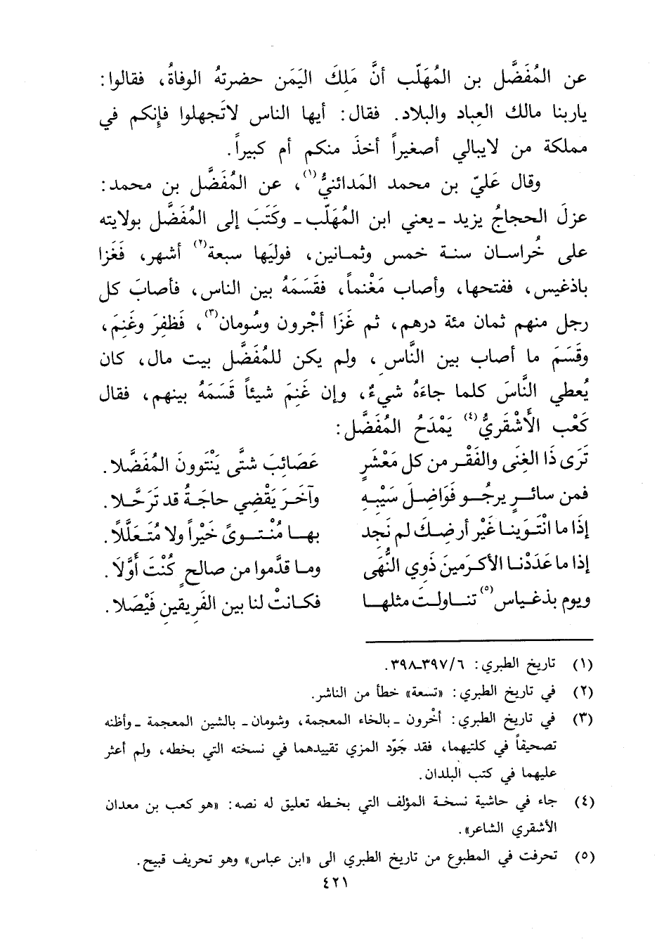 (1) تاريخ الطبري: 6 / 397 - 398.